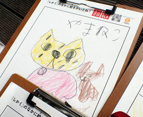 園内でどうぶつたちをスケッチする「おえかきZOO」。井の頭自然文化園とユニクロ吉祥寺店の共同企画として、今年も開催します。おえかき用紙と画材は無料で貸し出します。どうぶつたちをじっくり観察して絵を描き、動物園のおみやげとしてお持ち帰りください。