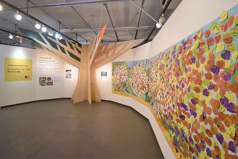 昨年、井の頭自然文化園は開園80周年を迎えて、さまざまなイベントを開催してきました。そのなかで、多くのみなさまから心のこもったメッセージをいただきましたので、スタッフ一同からの感謝の気持ちを込めて、そのメッセージの数々を紹介しています。色とりどりのメッセージカードで飾られた展示をぜひご覧ください。