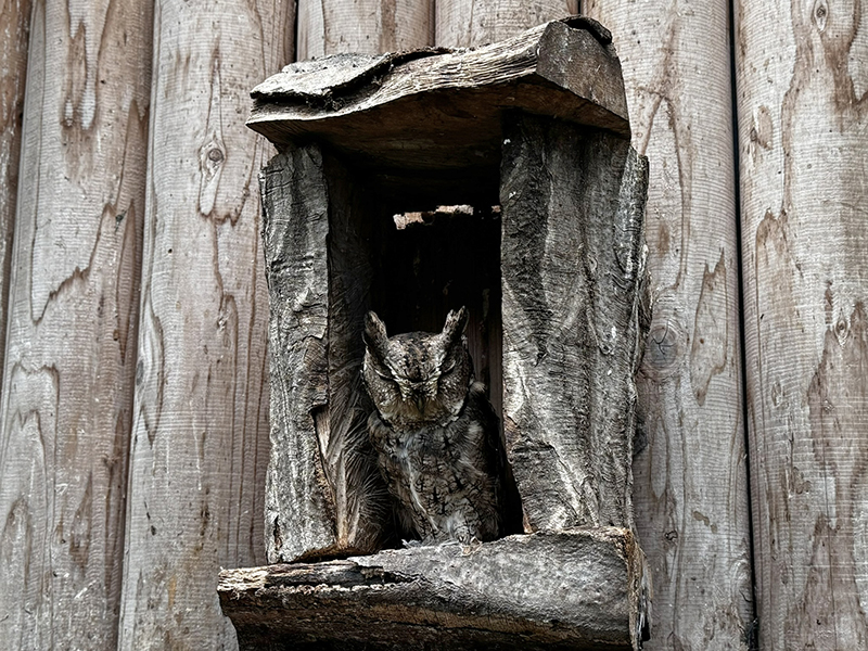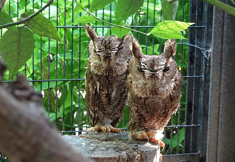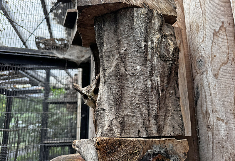 そんなふうに隠れるのが上手なオオコノハズク。井の頭自然文化園でも、いるはずの展示場の中を見て「いない!」と言っている来園者の方の声をよく聞きます。