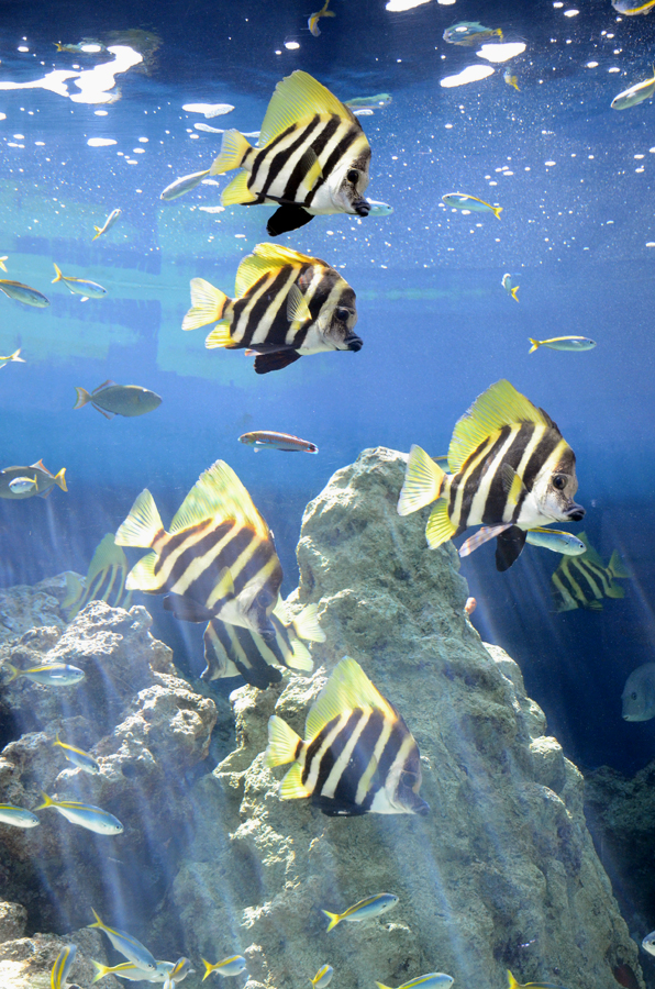 現在、「伊豆七島の2」水槽にはテングダイが11尾いますが、他の種類の魚も多く、やや落ち着きがありません。早くこの水槽に慣れてくれればと願っています。悠々と群れ泳ぐテングダイの姿は見ものです。どうぞご期待ください。