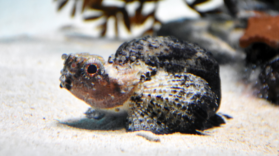 体は白や赤茶、黒などの色がまだらにあり、岩と似ているので気づかずに手を置いて触ってしまいそうになります。しかし、ひれには棘があるので気をつけなければなりません。