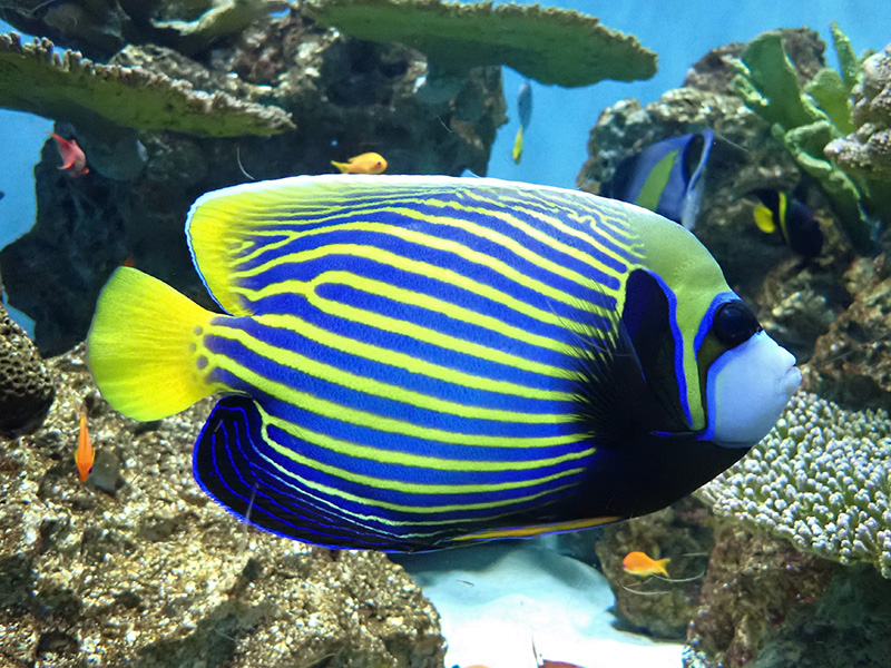 水族園にお越しの際は、鮮やかな魚たちのなかでも存在感抜群のタテジマキンチャクダイをぜひご覧ください。