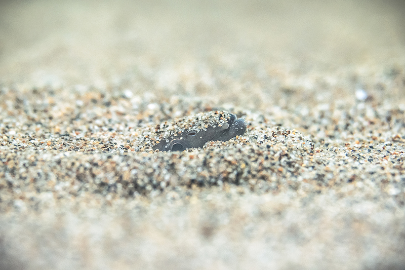 砂からほんの少しだけ顔を出すニホンウナギ