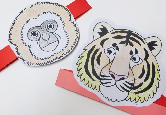動物のイラストのお面に色を塗って、自分だけの動物お面を作ります。