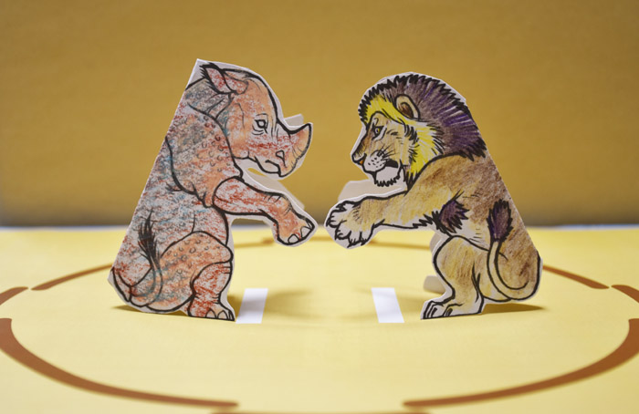 動物のイラストに色をぬって、自分だけの「どうぶつ力士」を作り、対戦させよう!