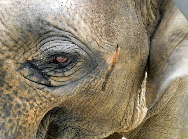 ヴィドゥラは2014年秋頃から側頭腺の分泌物が出始めましたが、それ以外の兆候は認められず、まだ本格的なムストと呼べるほどの変化は見られていません。しかし、先月(2017年9月)から隣の部屋でくらすオスのアジアゾウ「アヌーラ」がムスト期間に入ると、ヴィドゥラも合わせたかのように側頭腺から分泌物が出始め、おたがいの存在を今まで以上に意識するようすが見られるようになりました。最近は突然大きな声で鳴くこともあり、ヴィドゥラの体の中で変化が起きている影響なのではないかと思います。