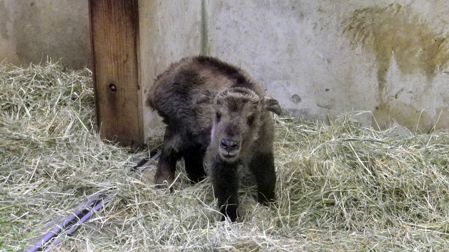 1つ目は2018年1月10日、「ホイ」がメスの子を出産したことです。父親は「テン」です。当日朝一番のあいさつしをたとき、ホイはいつもと変わらず落ち着いたようすでした。そこでいつもの作業に取りかかり、放飼場にターキンたちの朝食を置いて、準備が完了したところでホイの寝室をのぞくと、なんとそこには生まれたばかりの子がいたのです! その間わずか30分ほどでした。私は自分の目を疑いました。ついさっきまで、ホイは何ごともないようなようすだったのですから。