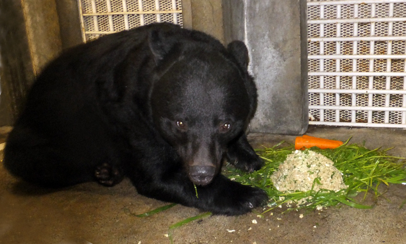 ニンジンを食べるツキノワグマのソウ