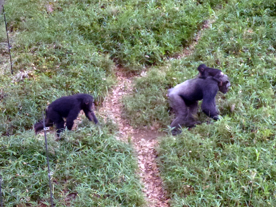 イブキが生まれてからおとなたちの行動は大きく変わりました。メスたちの行動を見ていると、赤ちゃんをかわいいと思っていることがよく伝わってきました。こうして育児経験のないメスは出産前に子育てを学んでいくのでしょう。群れで生活するチンパンジーにとって「群れの中での子育て」は、親子にとってはもちろんのこと、すべての個体にとってとても大事なことなのだと日々感じさせられます。