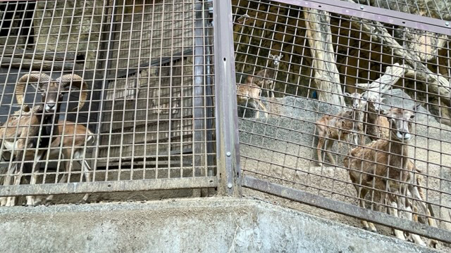 扉越しのムフロン(左:オス、右:メス)