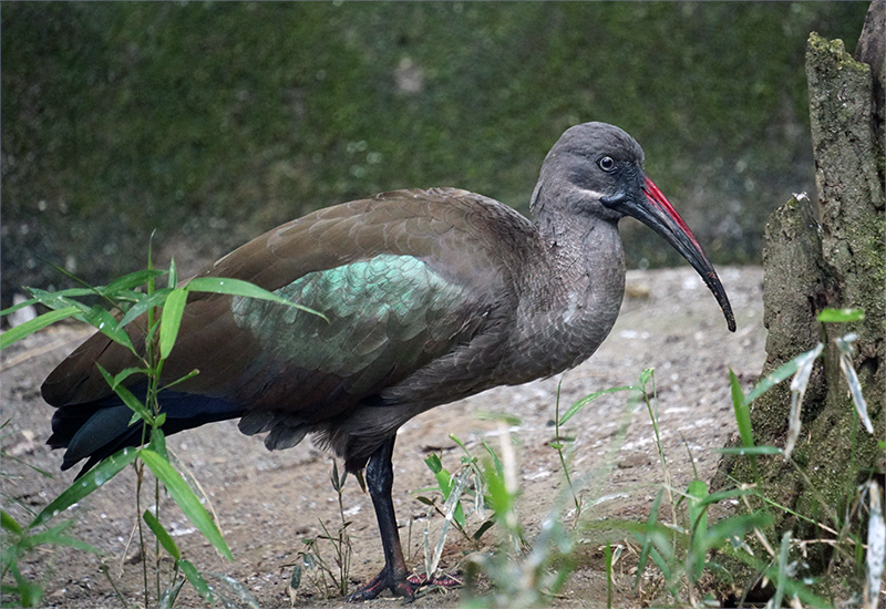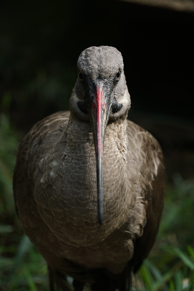 ハダダトキは、イボトキ属に分類され、生息域はアフリカ大陸のサハラ砂漠より南の地域の草原、サバンナ、湿地などの広範囲におよびます。外見は全体的に濃い灰色で一見地味ですが、翼の一部が光の角度によって緑や紫に見えたり、くちばしの上部が赤いようすは、正面から顔をみるとよく観察できました。