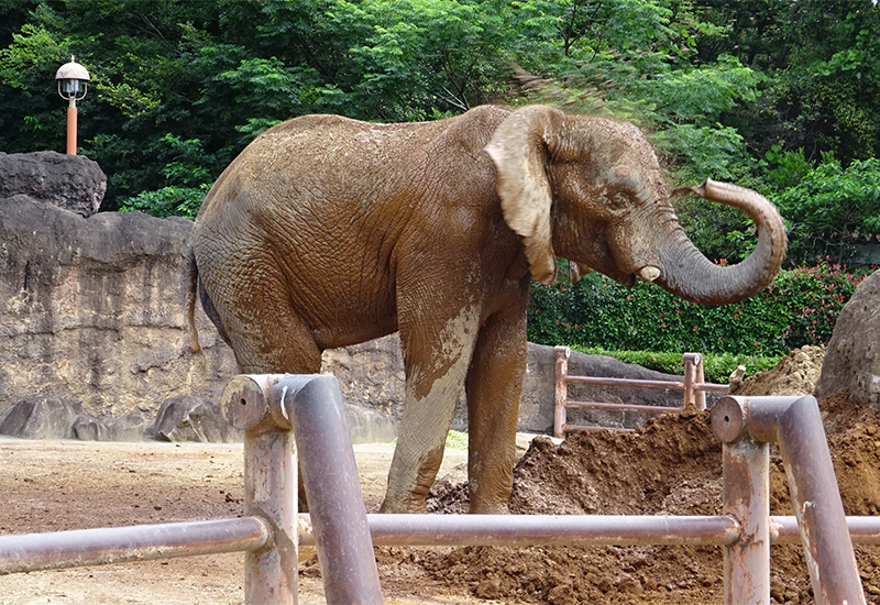 生物が生活するうえで、「日当たり」は重要な要素のひとつです。日当たりの良し悪しで生活や行動が大きく影響されます。とくに、日中を屋外ですごすことが多い動物園の動物にとって、日向は寒冷時には寒さ、日陰は熱暑時には暑さをしのぐために大きく役立ちます。しかし、日照は天気や季節、時間によって変化するため、それにともなって動物の行動も変化します。今回は担当者と動物を悩ませる「日当たり」と多摩動物公園のアフリカゾウ「砥夢」(オス)の行動についてお話します。