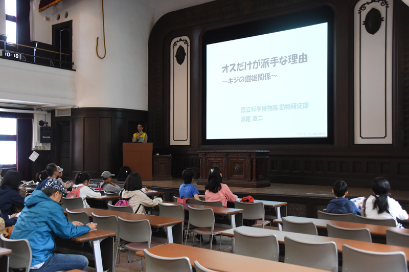 キジは「なぜ美しいのか?」というテーマについて、オスとメスの姿や行動の違い、つがい関係や子育てのしかたとの関係などの切り口から考えました。
