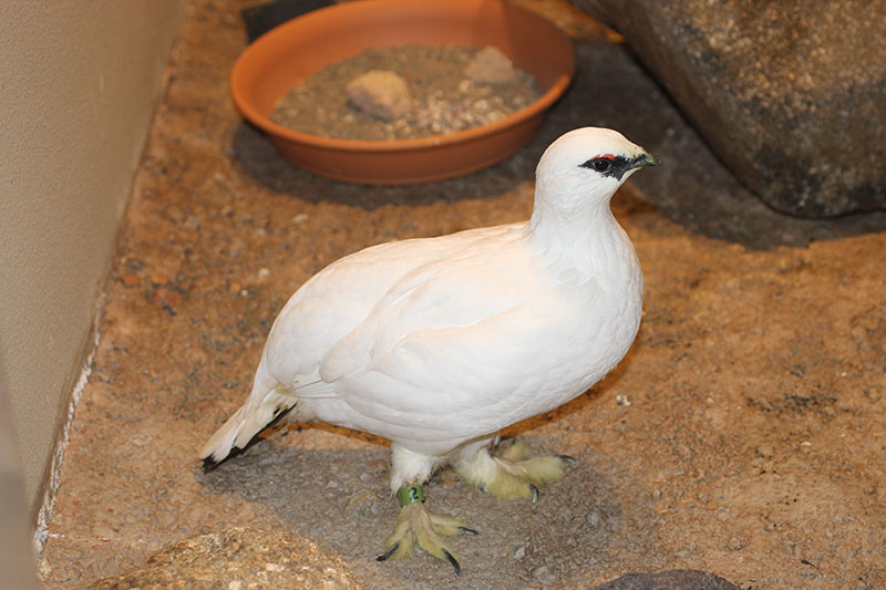 展示する日本産ライチョウ(オス)