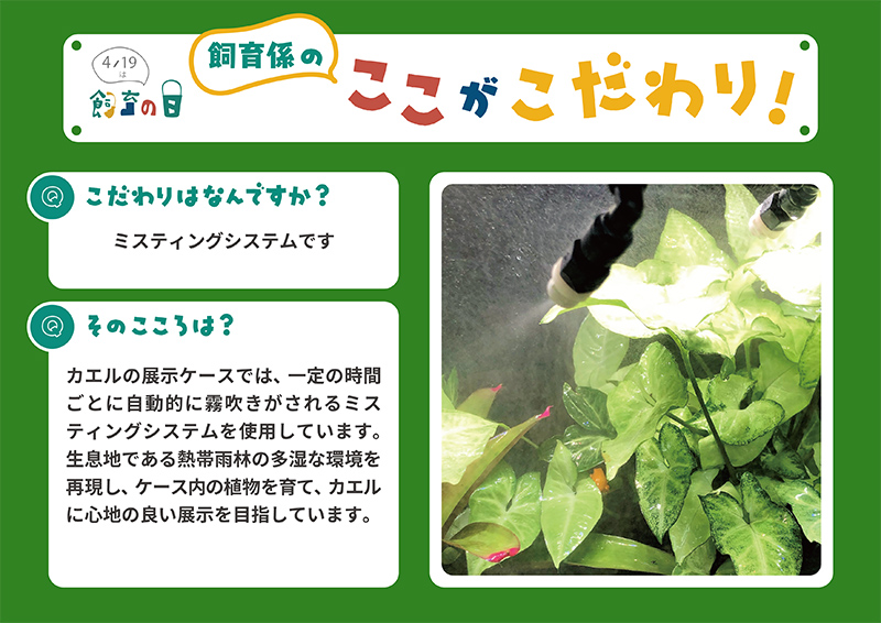 西園にいる大きなキリンから小さなカエルまで、西園飼育係のこだわりをこちらの記事でも紹介いたします(