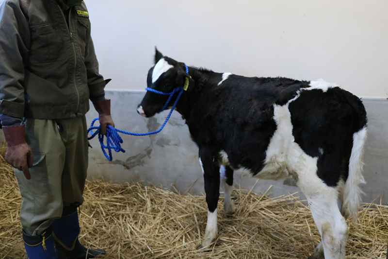 子ウシは子ども動物園すてっぷの「食育」をテーマとした教育プログラム「いただきますを考えよう」において、自分の食べているものと動物の関わりについて考える機会を子どもたちに提供するために来園しました。