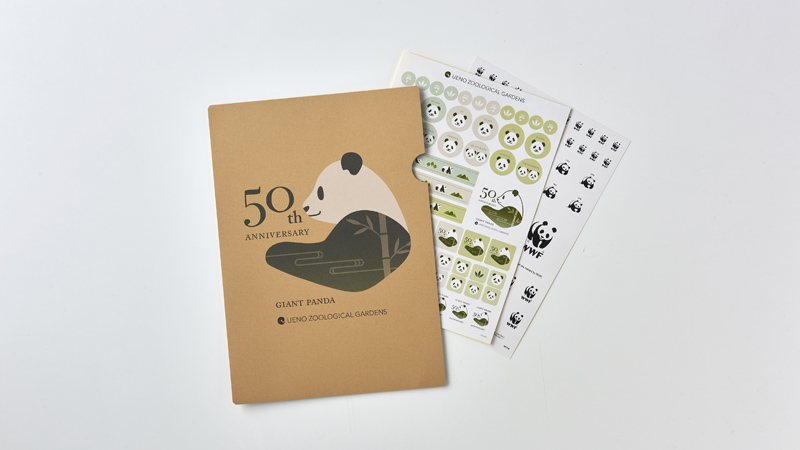各商品には、「ジャイアントパンダ来園50周年記念」ロゴとWWFのパンダロゴ、上野動物園の5頭のパンダのアイコンがデザインされています。また、商品には地球環境保全に配慮した紙を使用しています。