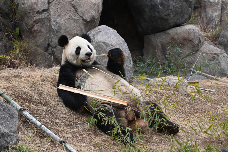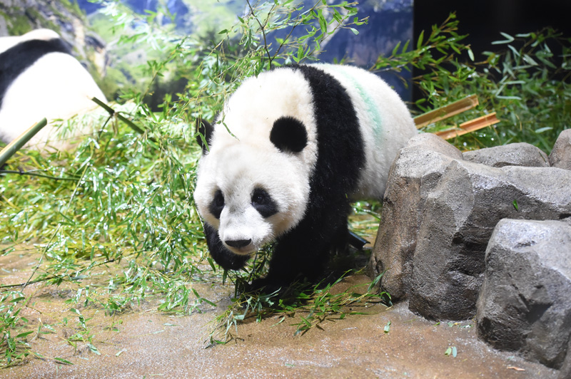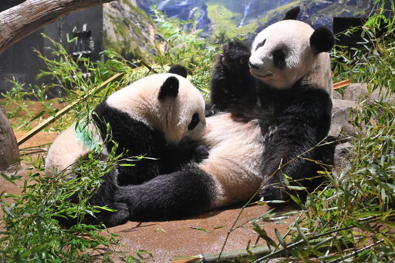 タケをかじる姿が多く見られるようになっており、そのほかはこれまでと同様に、シンシンにじゃれついたり、2頭でじゃれあったりする姿も見られています。