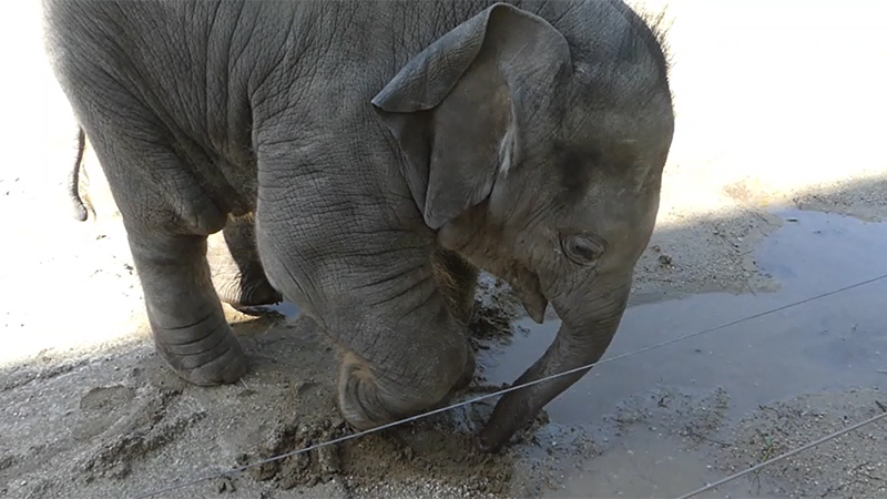 Pada hari Kamis, 15 April, setelah hujan, Arun terlihat bermain lumpur (!!) di genangan air yang terbentuk di kandang gajah Asia! Dia mengaduk air dengan belalainya dan menggali tanah dengan kaki depannya...
