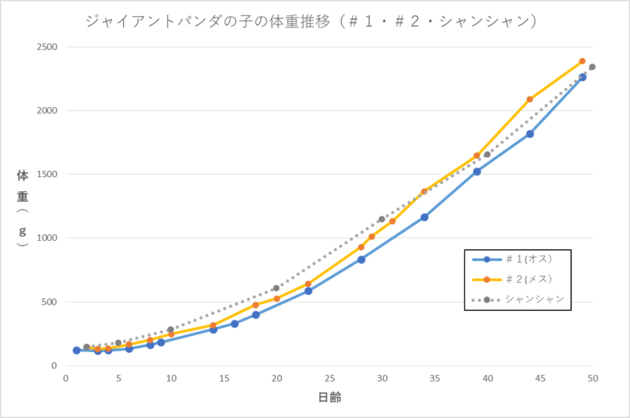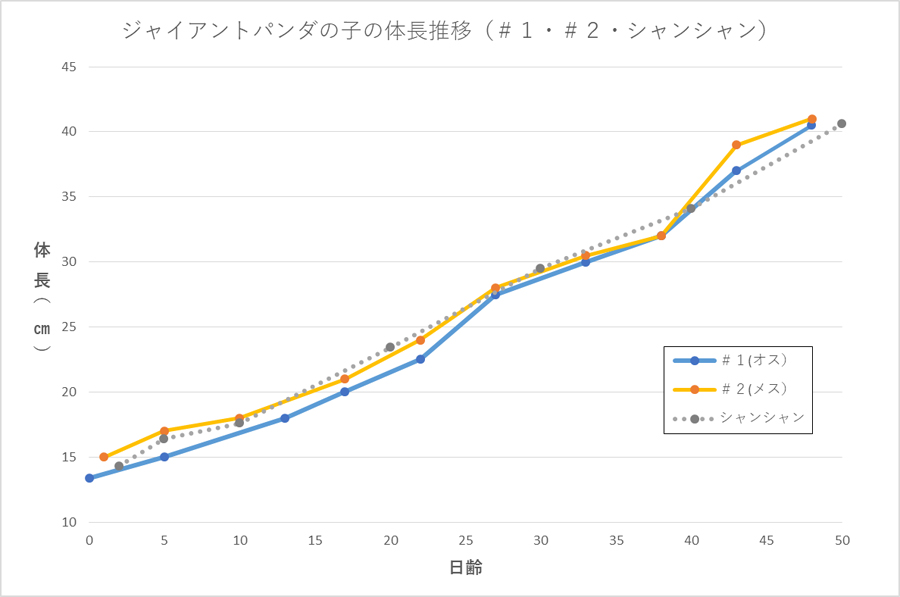 yang telah disebutkan dalam pembaruan terbaru kami, kami sebelumnya melaporkan bahwa dia "tumbuh dengan baik," tetapi kami memahami bahwa sulit untuk memvisualisasikan hal ini hanya dari angka harian saja. Oleh karena itu, kami telah membuat grafik yang menunjukkan berat dan panjangnya, termasuk Xiang Xiang.