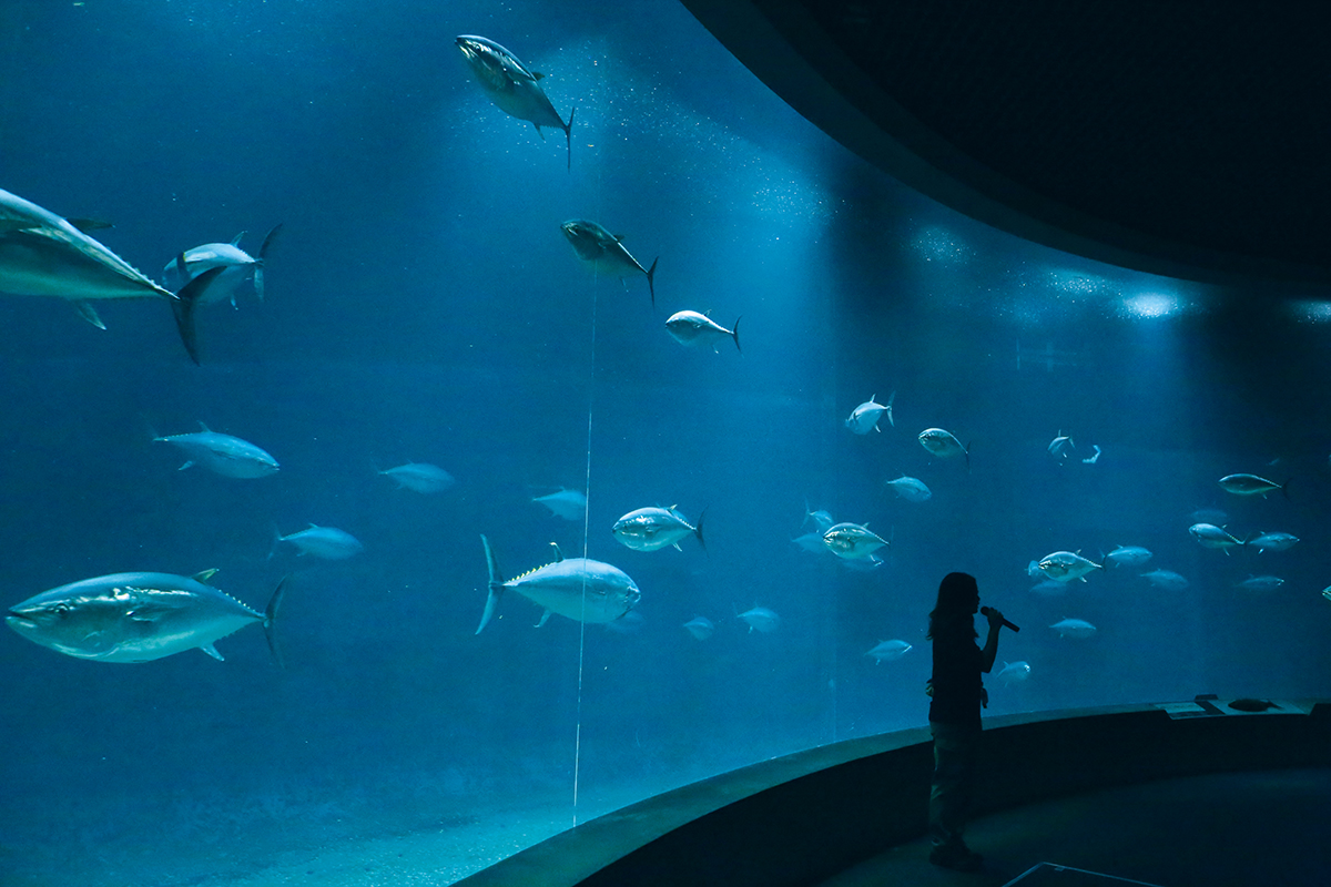 マグロってどんな魚? どうやって泳ぐの? 水槽前でマグロを観察しながら、体のつくりやくらしを学びます。短時間のガイドです。