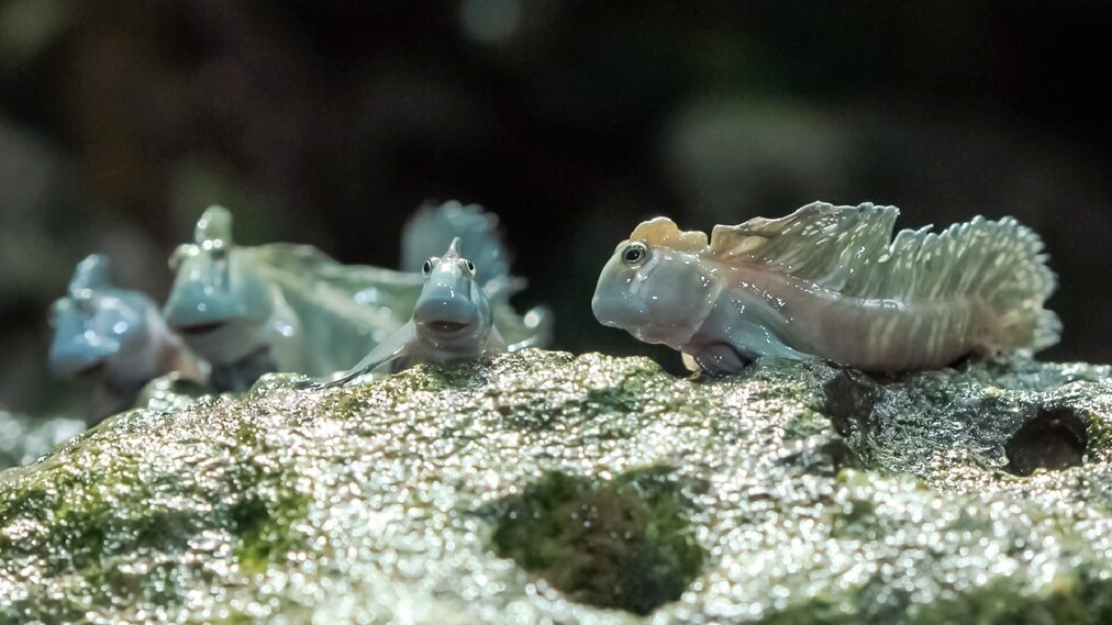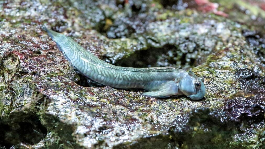 八丈島や小笠原諸島などの、荒い波がくだけ散る岩の上でみることができます。魚でありながらほとんど水に入ることはありません。それどころか波しぶきが体にかかると、岩や水面の上をピョンピョンと飛び跳ねて逃げていきます。水の外でも皮ふ呼吸で呼吸ができるのです。