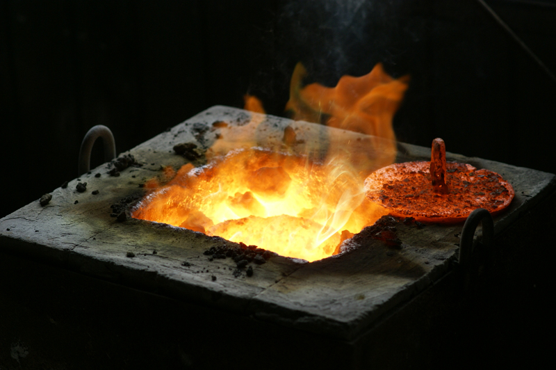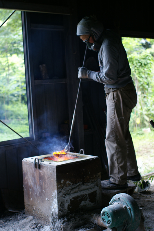 | 鋳造作業のようす | 鋳造作業をおこなう作者 |
