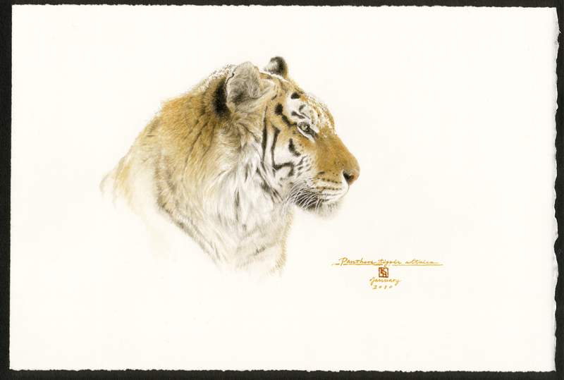 子どもの頃から動物と絵が好きで、私の描くイラストは10代から始めた印刷用のペン画が中心でしたが、20代半ばから水彩画を始めました。水彩画はチャリティーオークションのためや人に頼まれて制作する場合がほとんどなので、手元に残る作品はごくわずかです。そのごくわずかな原画のほとんどすべてをご覧いただくことができる珍しい機会を設けていただきました。