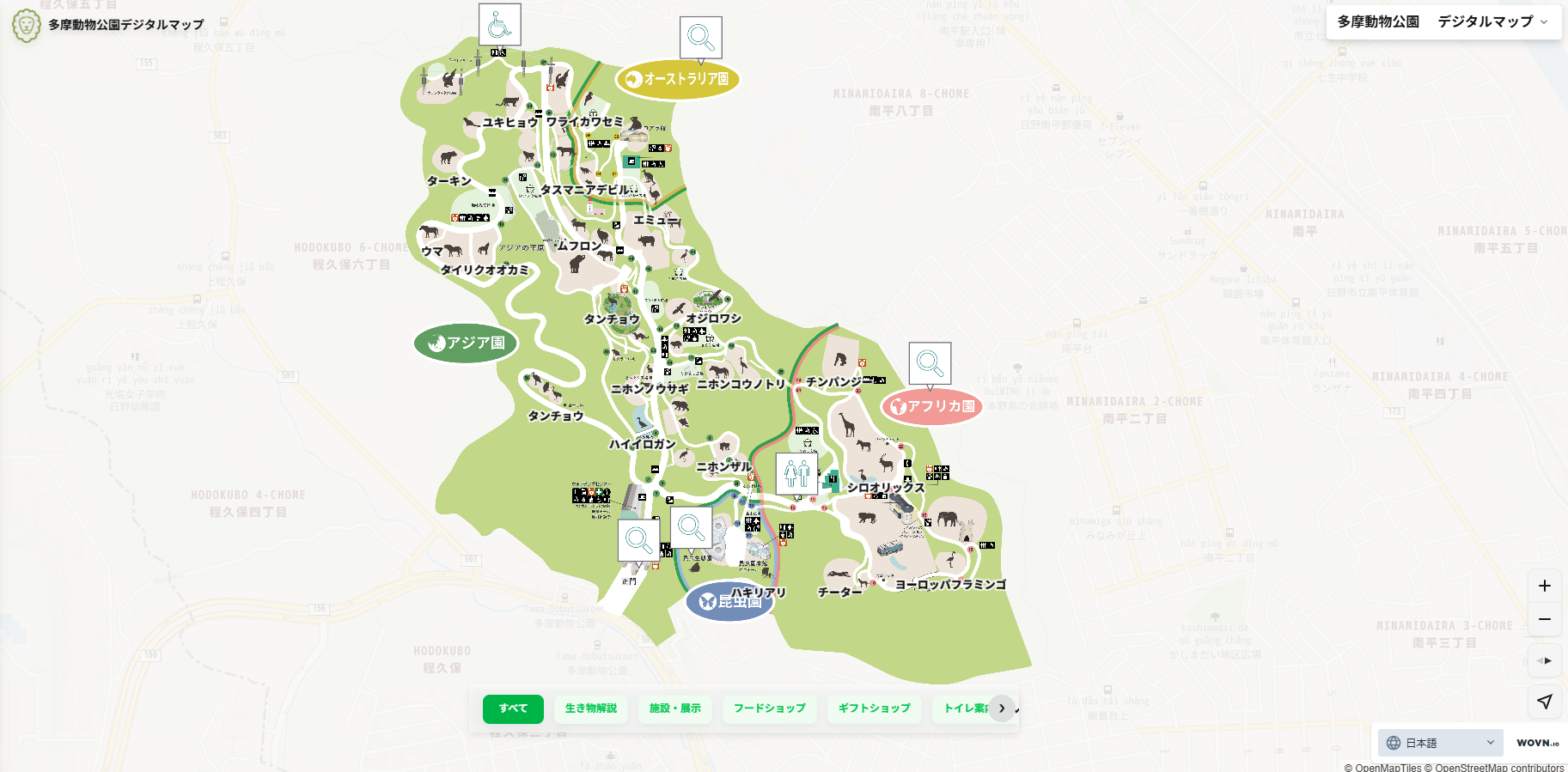 多摩動物公園の園内マップのページです。