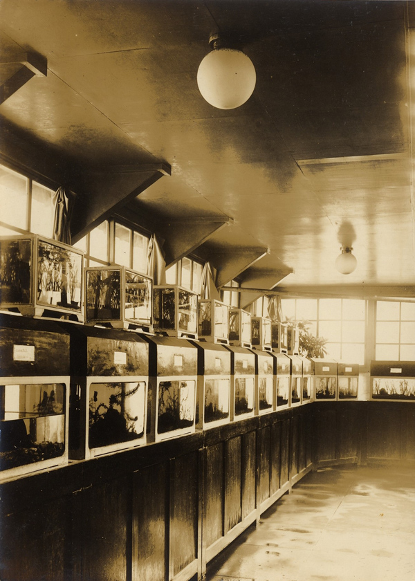 | 初代水生物館内のようす | 昭和17年(1942年)当時の水生物館パンフレット |