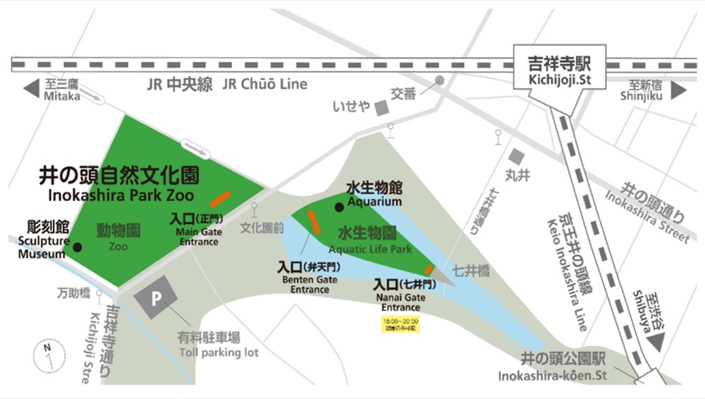 ※井の頭自然文化園に駐車場はありません。近隣の駐車場をご利用いただくか、公共交通機関をご利用ください。