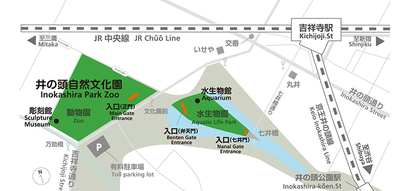※井の頭自然文化園に駐車場はありません。近隣の駐車場をご利用いただくか、公共交通機関をご利用ください。