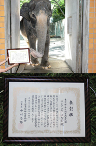 写真上:功労動物賞を受賞したアジアゾウはな子