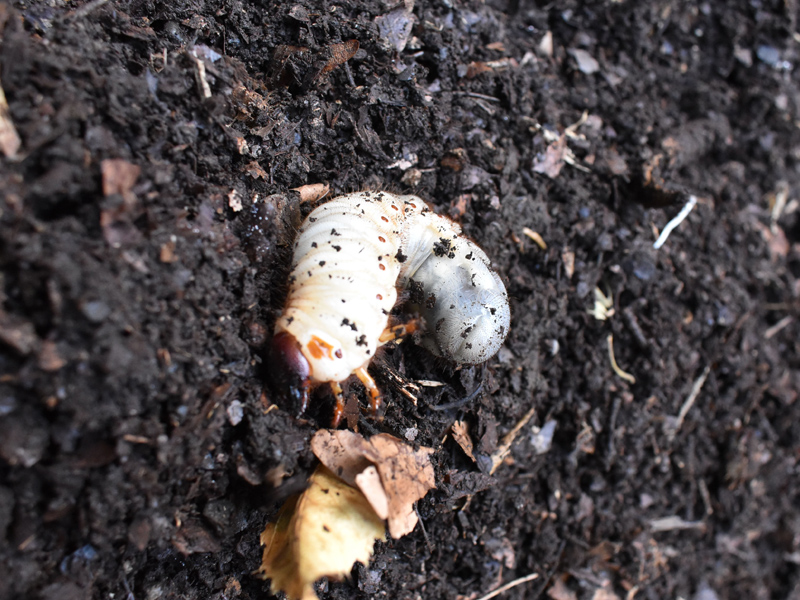 11月から、しばらくお休みしていたカブトムシの寝床を再開します。早速掘ってみると、立派に成長した幼虫を見つけました。