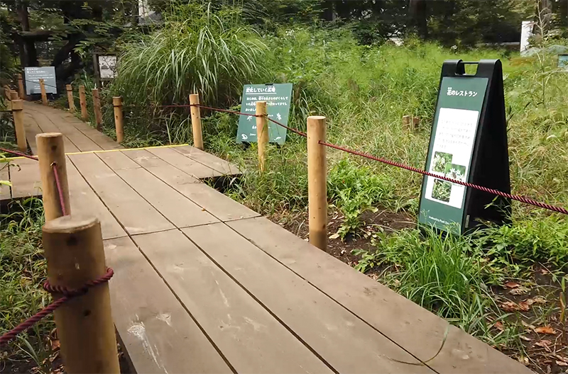 そこで、木道をアトリエ館側まで延ばし、広場を通り抜けられるようにして、プログラム休止期間中でも広場の生きものを少しでも感じてもらえるようにしました。