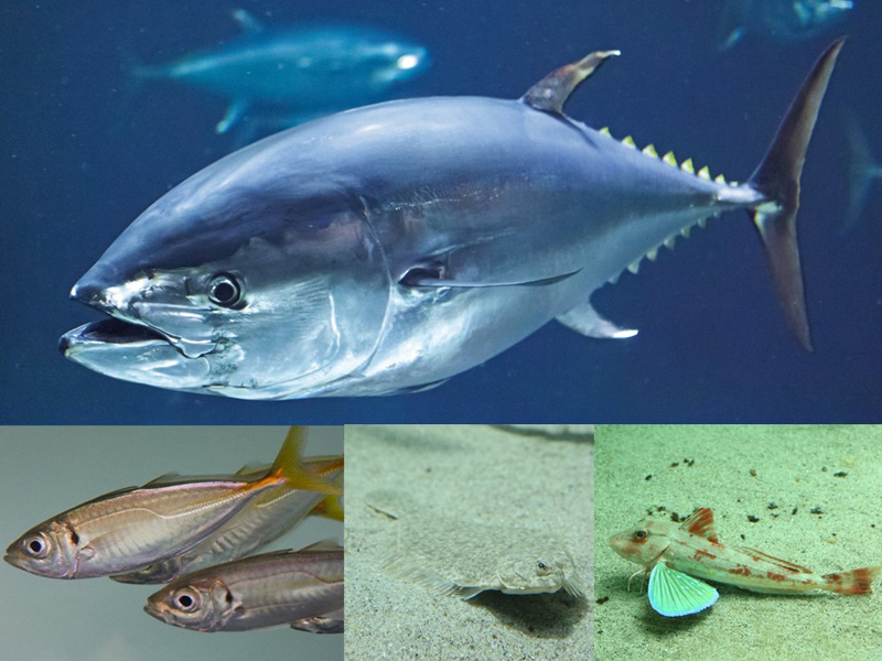 このプログラムは、おうちで用意してもらった鮮魚(生体標本)と、マグロやカレイなど水族園で展示している魚の生体標本や映像を使って、魚の体のつくりや泳ぎをじっくりと観察し、魚とわたしたち人間、またいろいろな魚をくらべます。