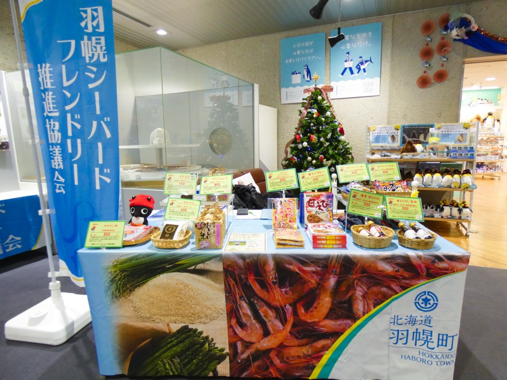 北海道の左上、羽幌町や苫前町の海鳥にやさしい取り組みから生まれた商品を中心に、物産展を開催します。「特別栽培米おろろん」や「ミズダコのおかしらカレー」、海洋プラスチックから作られた海鳥キーホルダーなどを販売します。