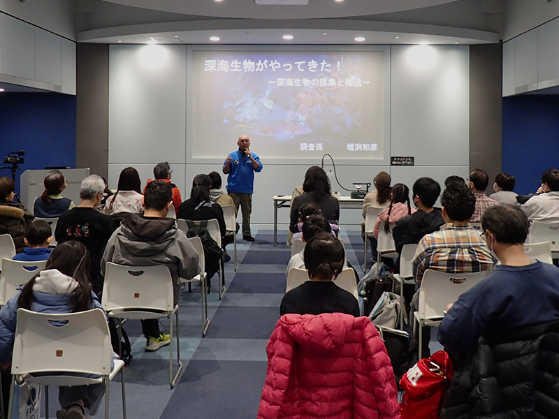 水族園における深海生物の採集について、スタッフがお話しします。さらに、水産業に関する研究機関である国立研究開発法人 水産研究・教育機構の研究者を講師としてお招きし、今まであまり食べられていなかった深海魚の活用方法についてお話しいただきます。