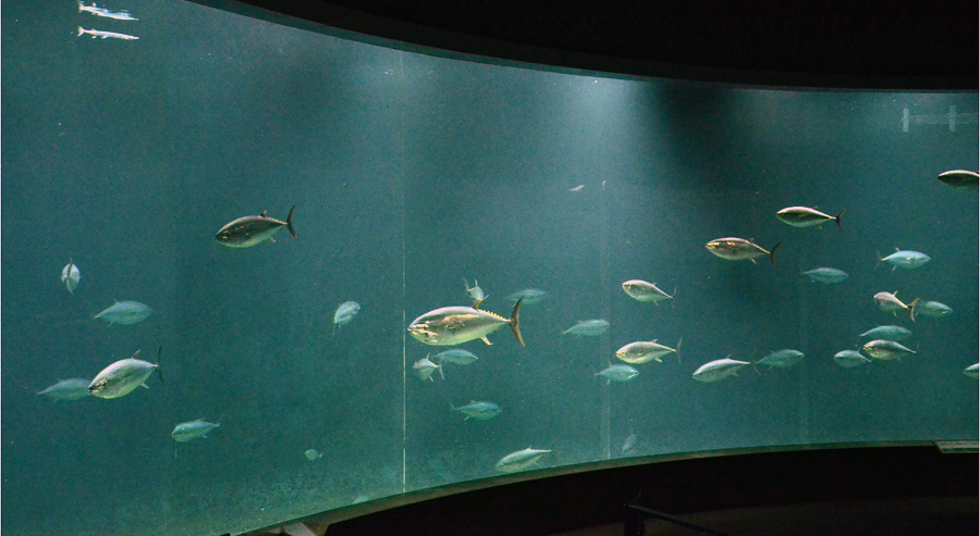 前回の記事でも少しふれましたが、マグロたちへの刺激を極力減らすための手段のひとつとして、これまで水槽の照明を24時間点灯させていました。しかし、マグロたちもかなり水槽に慣れてきたようすなので、10月7日から照明を段階的に消灯する試験をおこないました。