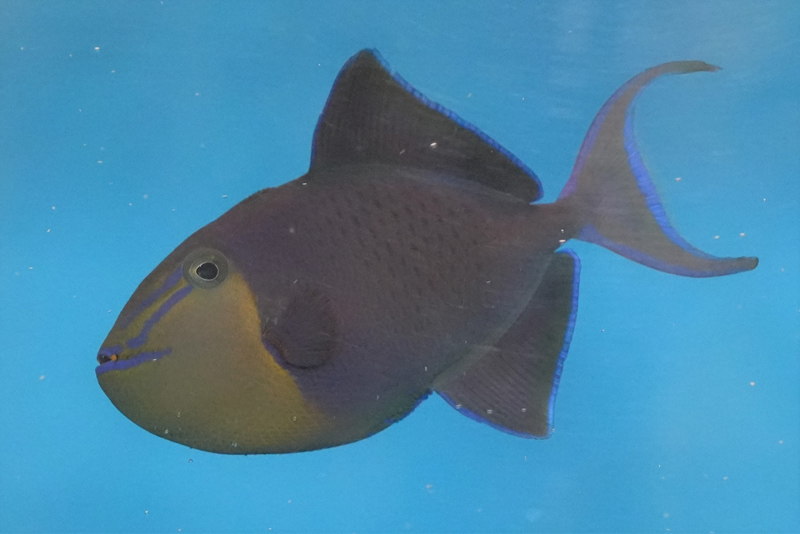 移動水族館の「うみくる号」ではさまざまな生き物を展示し、出張先でお見せしていますが、昨年新たにアカモンガラという魚を導入しました。ひらひらとした大きなヒレと面長な顔におちょぼ口、なんともユーモラスな外見をしたこの魚は、日本ではおもに関東より南の温かい海にすんでいるモンガラカワハギのなかまです。