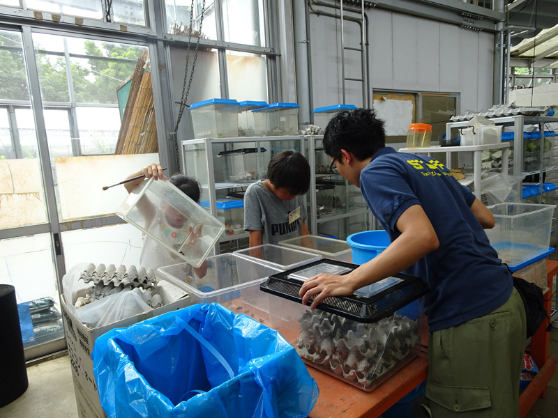 各日12名飼育係と一緒に標本づくり、観察などをおこないます。