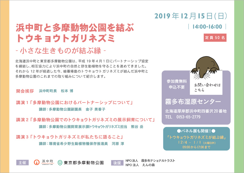 協定締結から12年が経過し、このたび嶮暮帰島(けんぼっきとう)のトウキョウトガリネズミが結んだ浜中町と多摩動物公園のこれまでの取組みについて紹介するイベント「