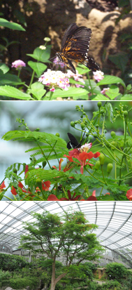 ホウオウボクは、昆虫生態園の中心にそびえ立つ大きな木で、生態園のシンボルツリーとなっています。マダガスカル原産のマメ科の樹木で、2011年の夏は真っ赤な花がたくさん咲きました。シロオビアゲハがホウオウボクの花の蜜を吸うときに花粉が翅や体につくため、オレンジ色に染まったシロオビアゲハができあがったのです。