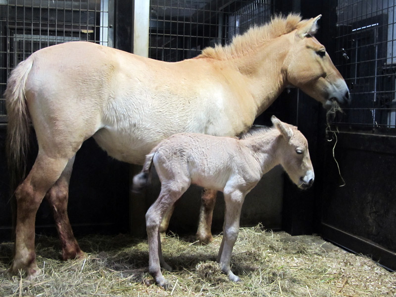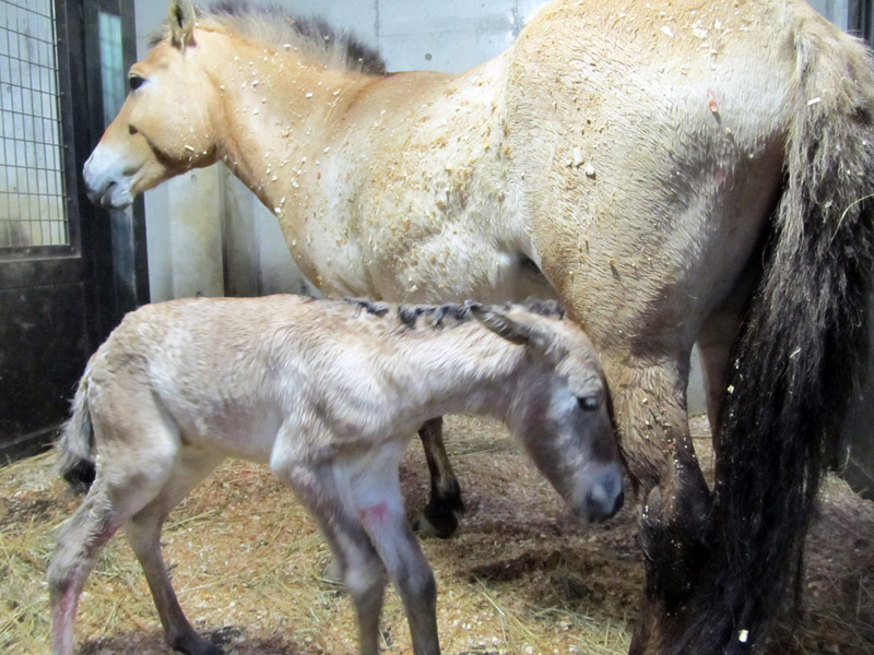 なお、モウコノウマの成獣は明るい黄褐色ですが、子どもは全体的に白っぽく、たてがみと尾は縮れます。