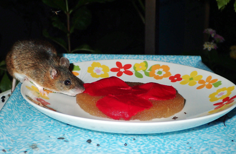 ネズミも甘いものが好き? アカネズミのいたずら