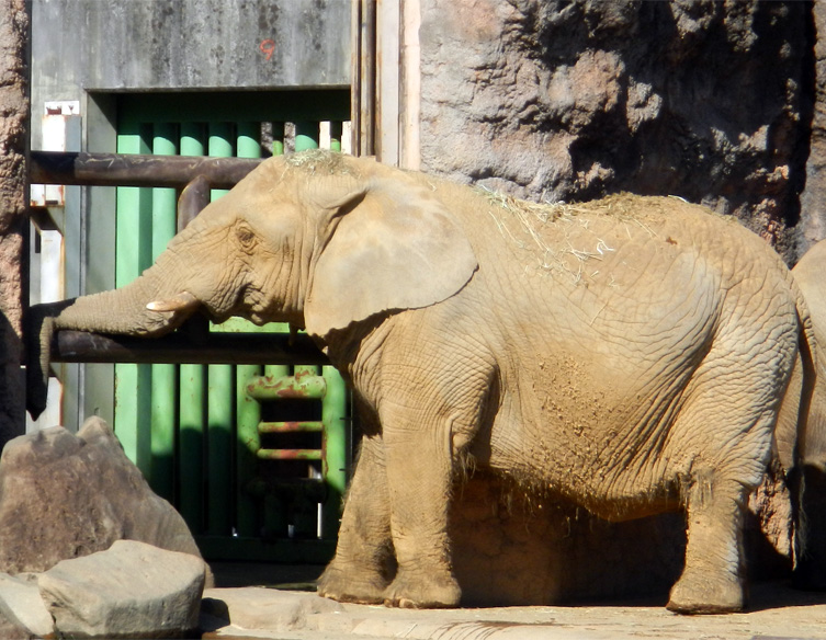 ここで「からだ」に関する質問をひとつ。みなさんは、上の写真のアフリカゾウを見てどう思われますか? たしかに「全然動いていない」のですが、よく見ると鼻全体を棒にあずけ、鼻先はダラリとたれさがっています。そもそも、なぜ「動かない」のでしょうか。疲れているのでしょうか。それとも単に鼻が重いのでしょうか。というより「アフリカゾウの鼻」って重いものなの……?