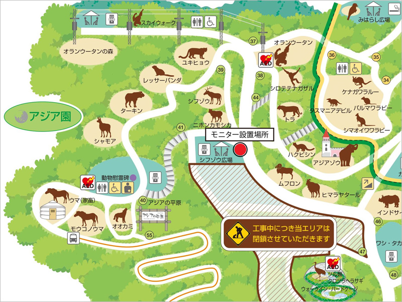 場所   メイン園路、ムフロン舎先からシフゾウ広場へ降りるコーナー(地図参照)