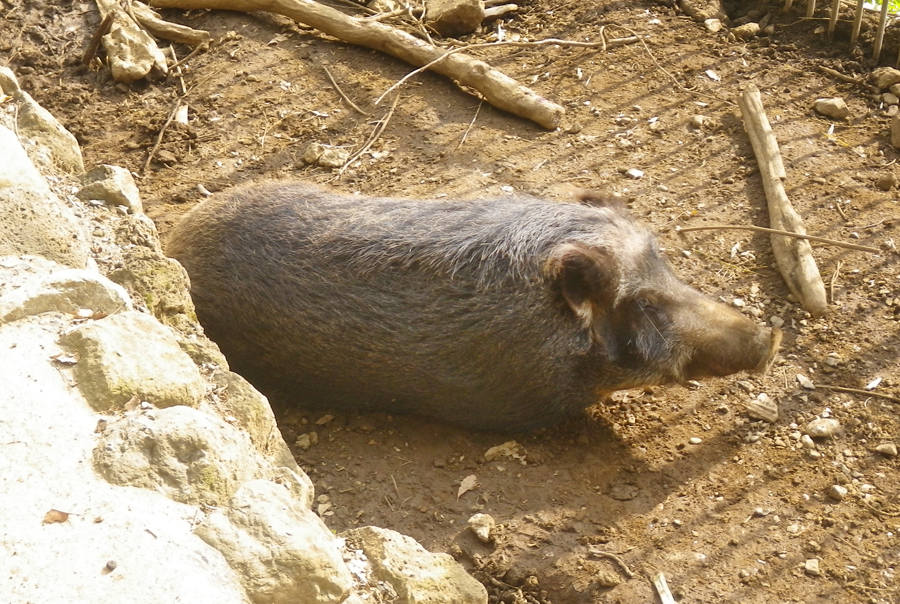 多くの思い出を残してキントンはいなくなりましたが、現在、イノシシ舎では後輩のクロマメが先輩を見習って、のんびりとくらしています。