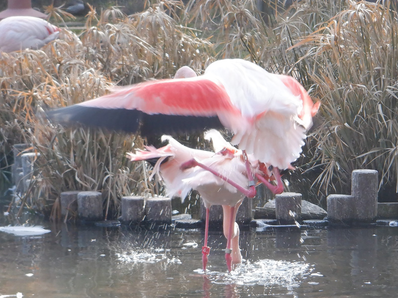 過去の例では、1羽が産卵して抱卵を開始すれば、それがほかのペアへの刺激となり、次々と営巣、産卵がおこなわれていたため、その第一号が現れるのを心待ちにしています。なかなか思うように復活しないフラミンゴの繁殖ですが、その兆しは現れています。期待と願いを込めて、フラミンゴが落ち着いて産卵し、子育てできる環境を整えるよう見守っていきたいと思います。