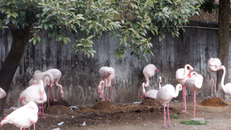 多摩動物公園でオオフラミンゴが繁殖のシーズンを迎えています。現在105羽を飼育しており、過去の飼育数から考えると健康的に飼うことができる羽数なのですが、今後も健康的な個体群を維持していくためには繁殖を続け、産卵・育雛の経験をもつ幅広い世代がそろう、バランスの取れた個体群を維持する必要があります。しかし、残念なことに一昨年、昨年は繁殖の成功に至りませんでした。